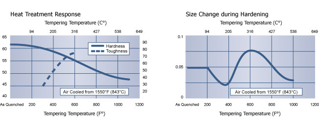 為了最大限度地減小橫截面內(nèi)部應(yīng)力大于6英寸(152.4 mm)并提高熱處理后EDM的工具的穩(wěn)定性,強(qiáng)烈建議在回火溫度下浸泡4到6小時(shí)。